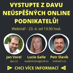 Popis setkání: 83% podnikatelů se ve svém on-line pdnikání plácá stejne jako vy! Tenhle webinář vám napoví jak prodavát on-line.